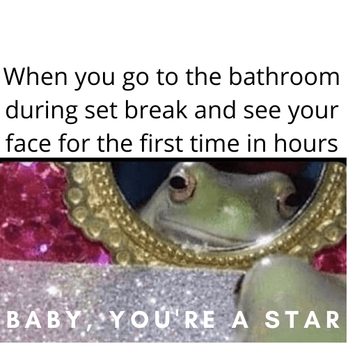 The actions taken to create memes is known as the “behavior” (Davison). It is the steps taken to bring the meme to reality, which is essentially “photographing…and manipulating the photograph with software” (Davison). The behavior of a few of my memes included finding a still picture from Saturday Night Lives “super fans” skit, and a still picture from the episode of “The Office” in which Michael Scott is briefly into parkour. My other meme was derived from an old meme that I saw once, which described a hungover person looking into the mirror in the morning, and showed the picture of a frog looking at itself in the mirror. For that meme, I customized the photo by adding “Baby, you’re a star” for good measure. After I determined the perfect photo, I added in the classic “when ( this happens )” to prompt the picture I chose. But, for my third meme, I went with a more recent meme prompt which is conversational and aims to describe an interaction that would be common amongst my audience.